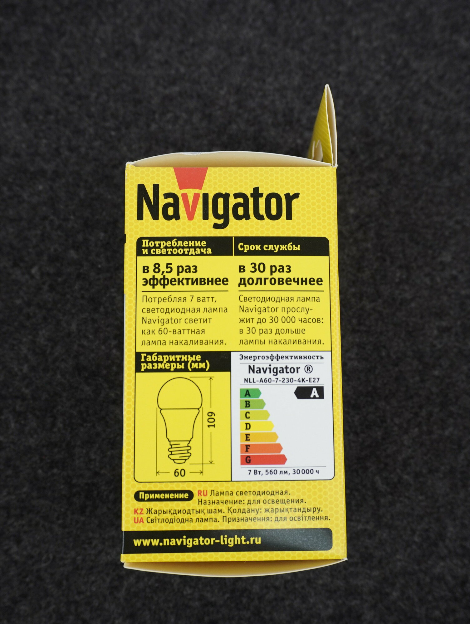 Лампа светодиодная 94 386 NLL-A60-7-230-4K-E27 7Вт грушевидная 4000К нейтр. бел. E27 560лм 170-260В NAVIGATOR 94386 (1 шт.)