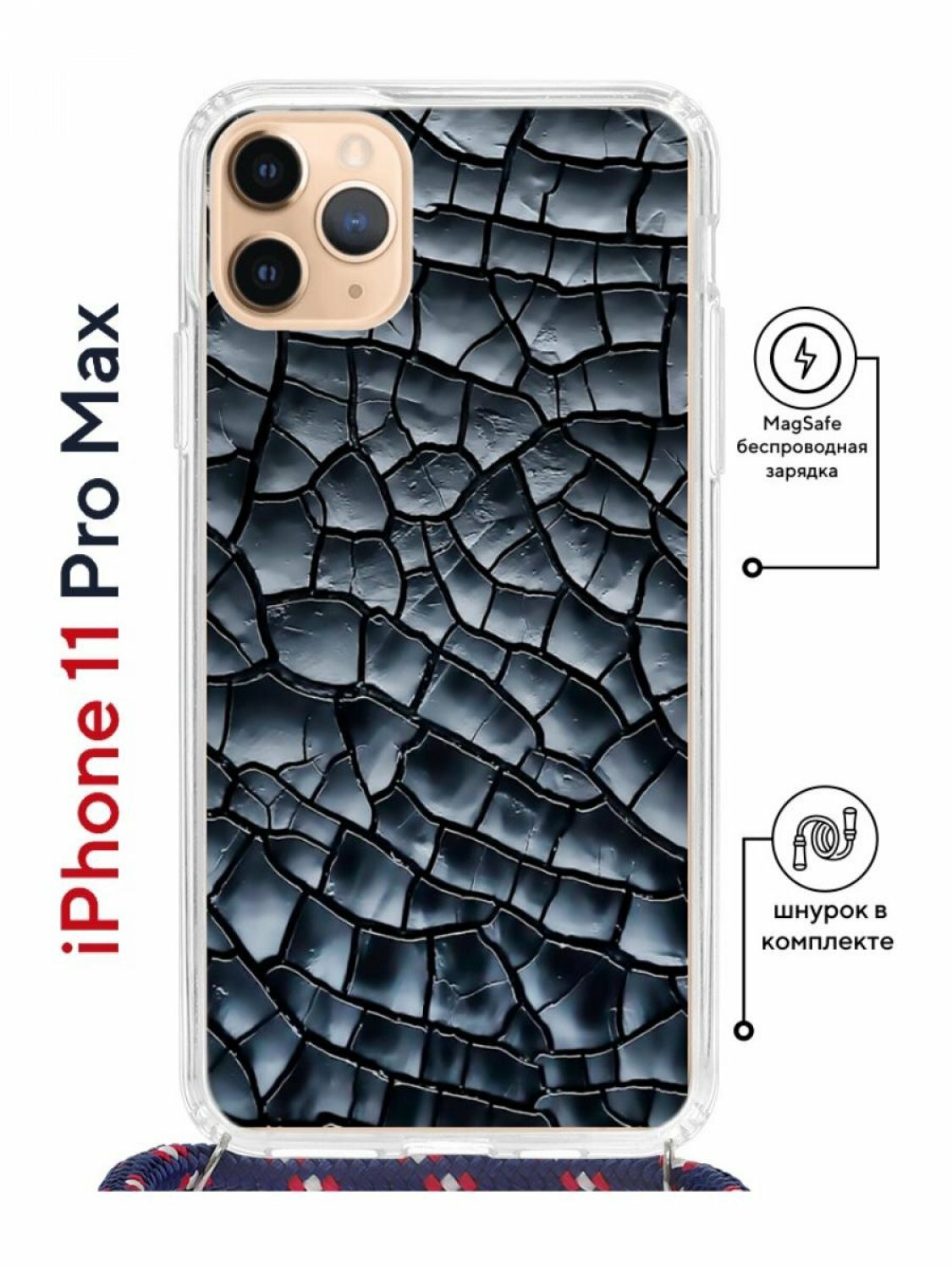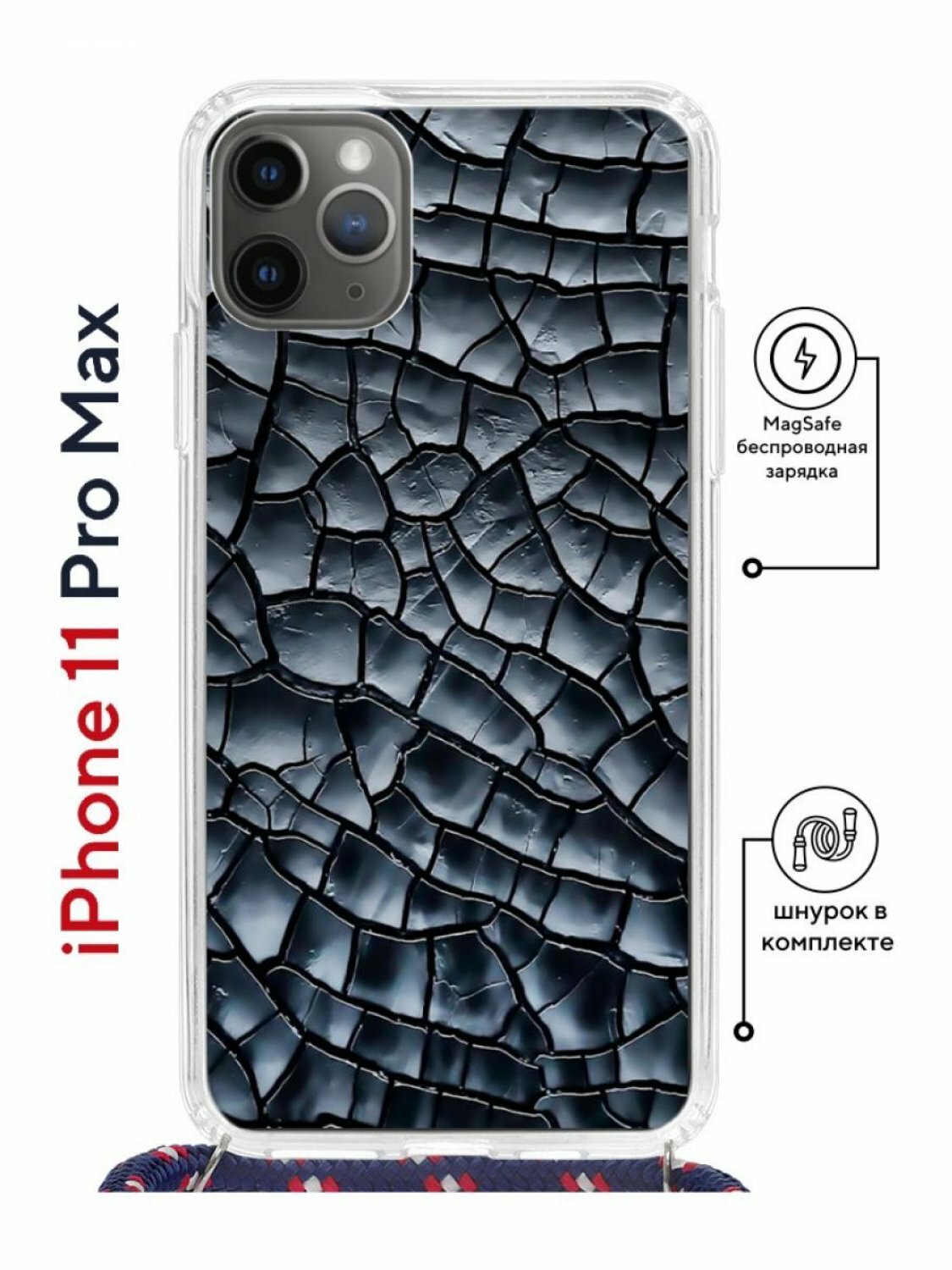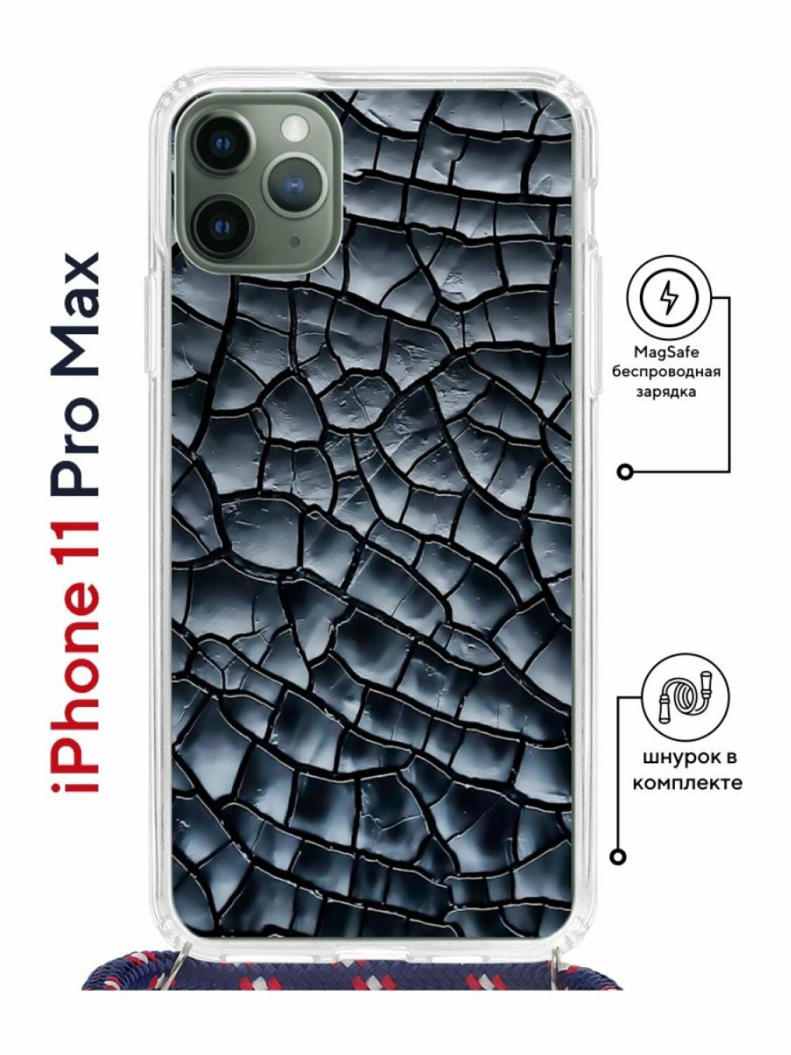 Купить Чехол для Apple iPhone 11 Pro Max Kruche Print MagSafe Magrope Cracks,пластиковая накладка со шнурком и рисунком,противоударный силиконовый бампер