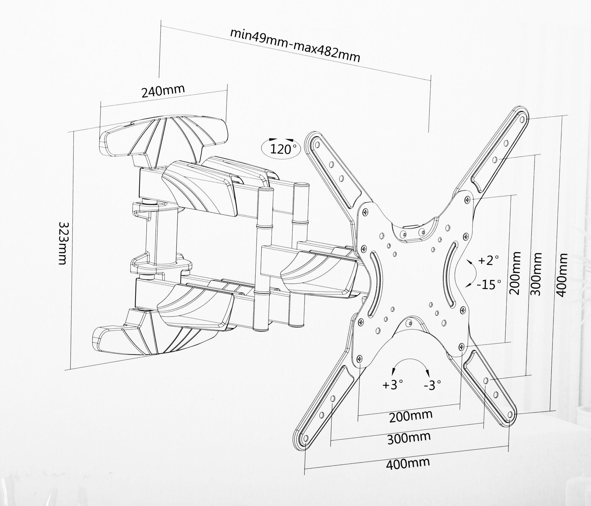| Вылет от стены/потолка | 49-482 мм |