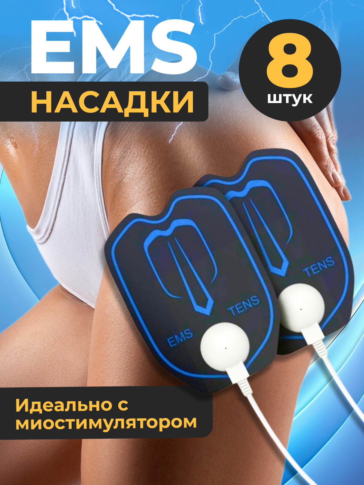 Миостимулятор для мышц пресса ягодиц бедер с электродами, массажер для мышц