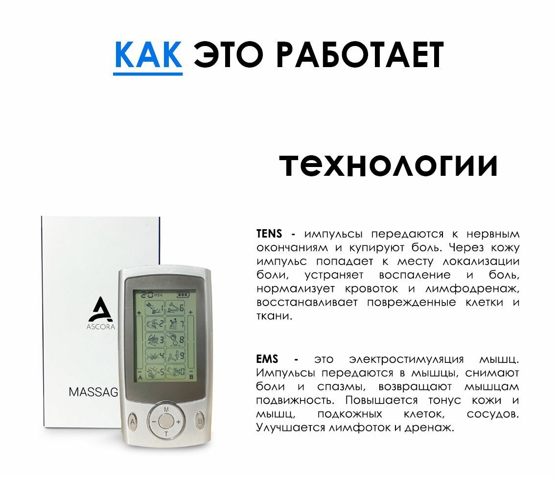 Миостимулятор для тела Ascora "Удобный доктор", электромиостимулятор, массажер для тела интересное: