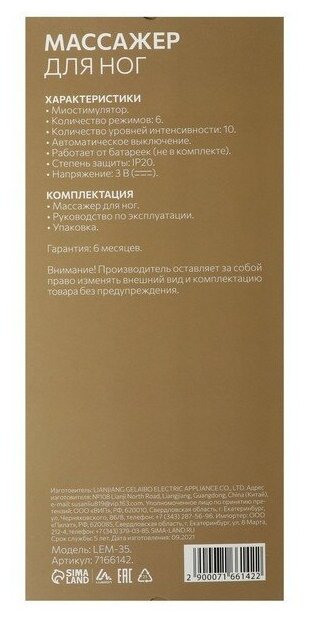Массажёр для ног Luazon LEM-35, миостимулятор, 6 режимов, 2*ААА (не в компл.) интересное: