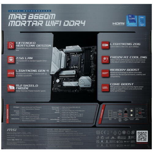 Материнская плата MSI MAG B660M MORTAR WIFI DDR4 Socket 1700 B660 4xDDR4 2xPCI-E 16x 1xPCI-E 1x 6xSATA III mATX Retail