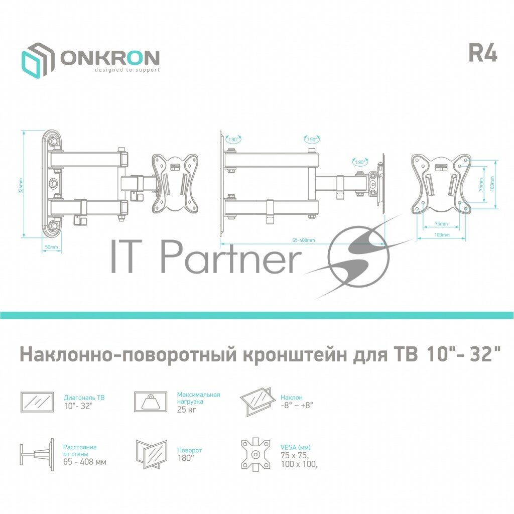 Кронштейн для телевизора Onkron R4 черный 10-32 макс.25кг настенный поворот и наклон
