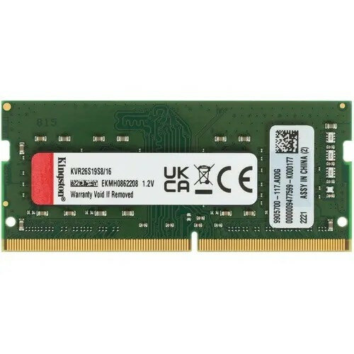 Kingston Модуль памяти Kingston DDR4 SODIMM 16GB KVR26S19S8/16 PC4-21300, 2666MHz, CL19 комбинированная расцветка