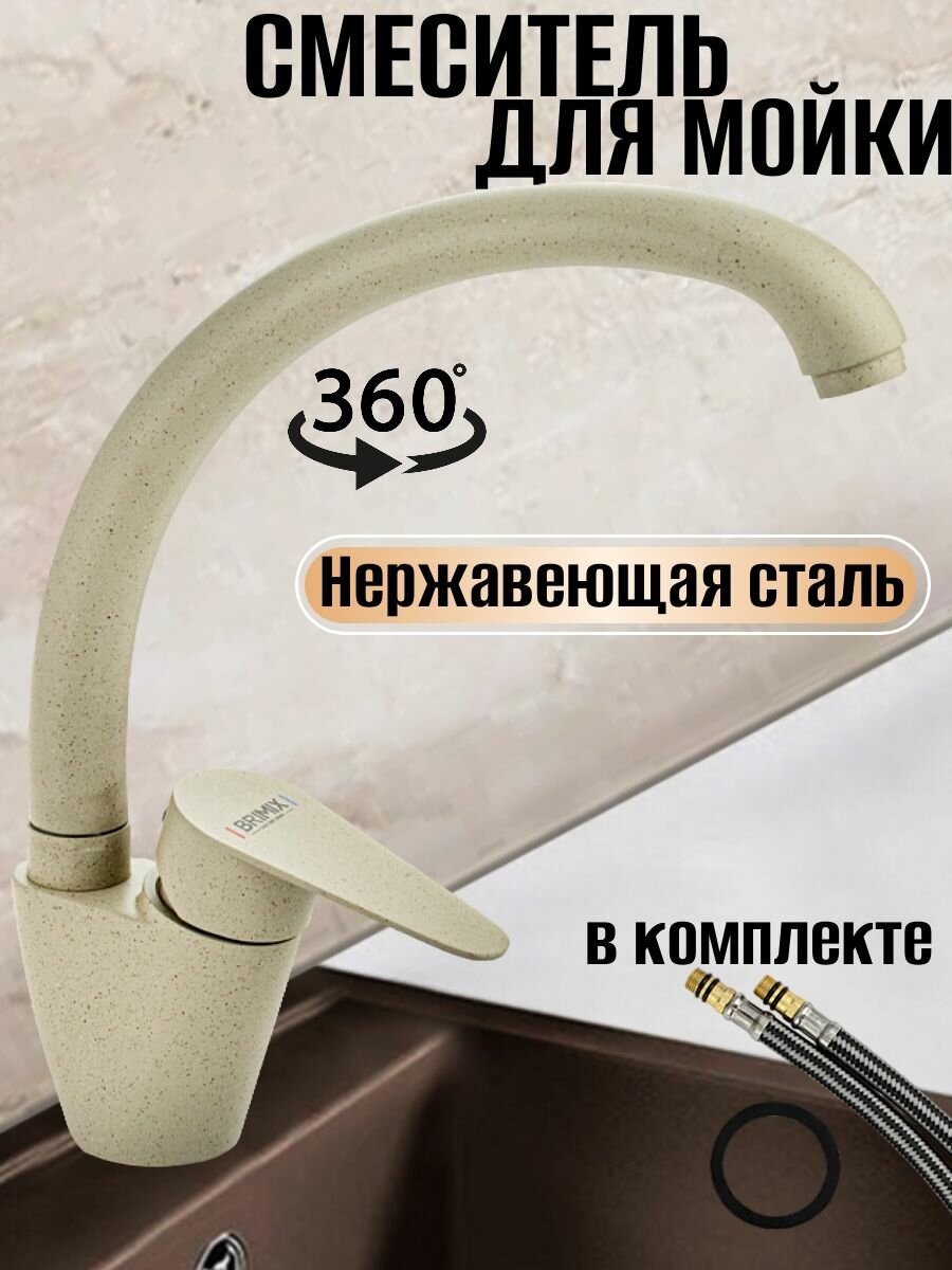 Смеситель для кухни шаровый, боковой, из нержавеющей стали марки 304, цвет тёмно-бежевый камень.