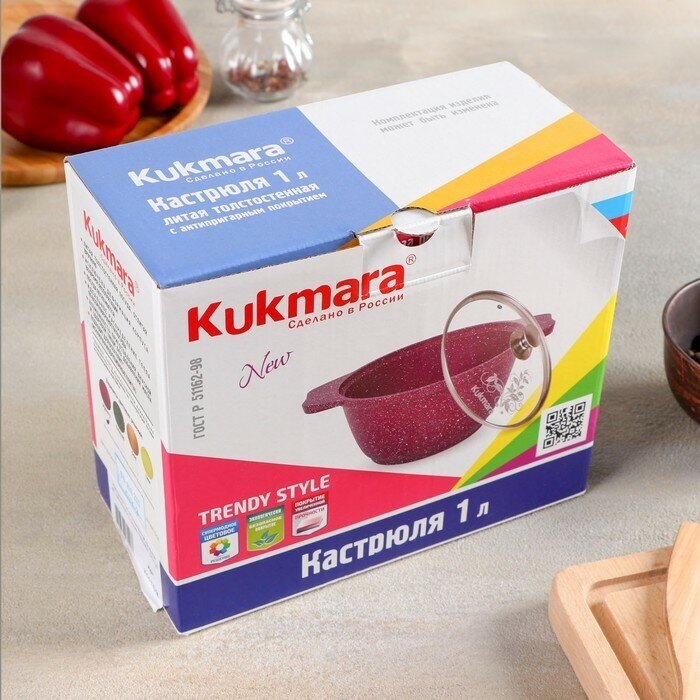 СохранитьKUKMARA Кастрюля Trendy style, 1 л, стеклянная крышка, антипригарное покрытие, цвет бордовый интересное: