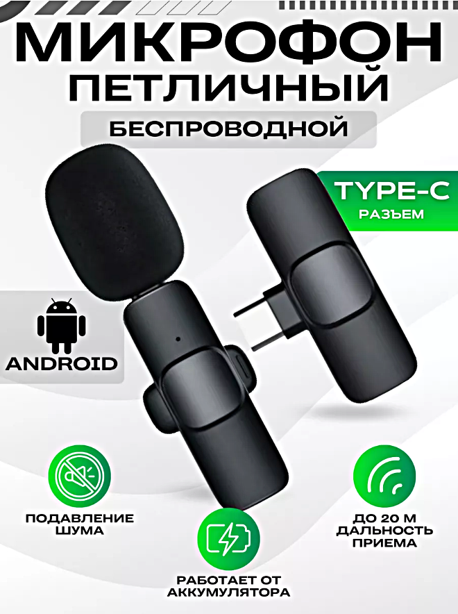 Микрофон беспроводной петличный, Микрофон с разъемом Type-C для Android, Петличка для стрима, конференций, Черный интересное: