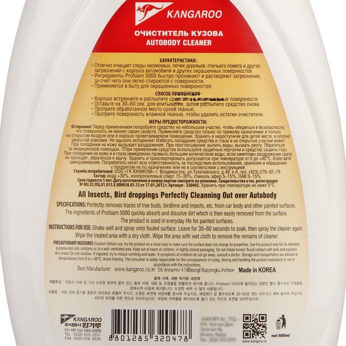 Очиститель кузова "ProFoam 5000", 600 мл 320478 KANGAROO Корея
