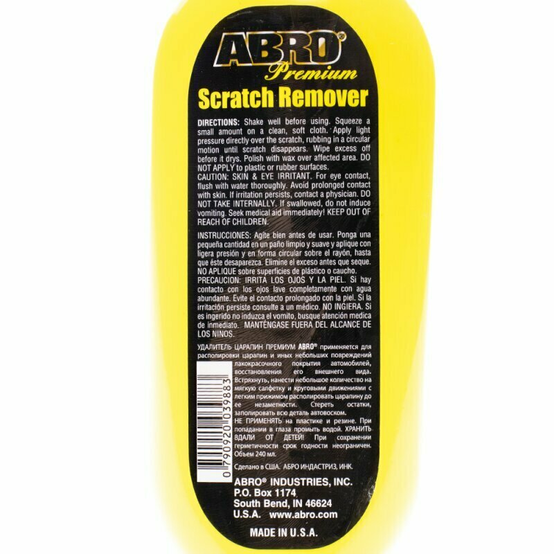 Полироль кузова ABRO Premium Scratch Remover, для удаления царапин с лакокрасочного покрытия, бутылка 240мл, арт. SR-800