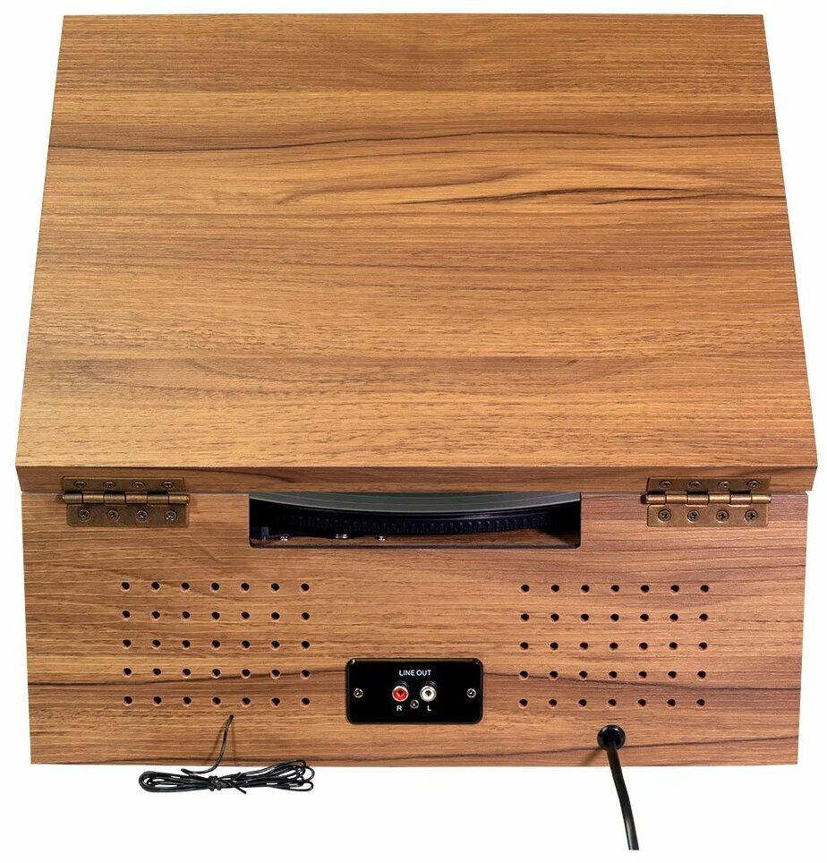Встроенная колонка- среднего качества- докупал внешние. Аукс только на передней панели. Крышка верхняя не откидывается подностью |