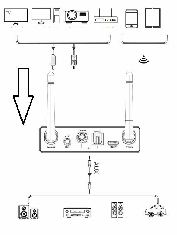Axe-35 Bluetooth 5.3 приемник-reciever 6 в 1: Блютуз, tosllink, 3,5, micro SD, USB, coaxial а аккумулятором на 20 часов интересное:
