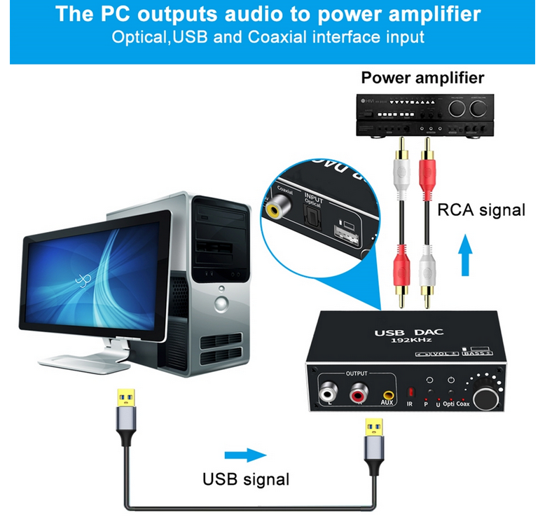 Цифро-аналоговый преобразователь декодер USB DAC 192kHz (S/PDIF, Coaxial, RCA, AUX, Vol, Bass) интересное: