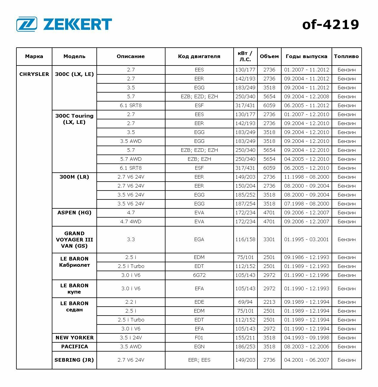 Фильтр масл. GAZ Gazelle 03- Gazelle Next 13- Jeep Grand Cherokee I-III 91- Wrangler I II 86- C Zekkert Артикул: of-4219