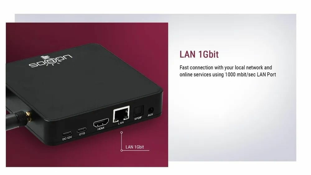 | Минусы: | Разочарован в пульте ugoos, на другой приставке пульт китайский, в разы удобнее. Подсветки нет, кнопок мало, при подключении пару секунд тупит. |