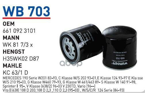 WUNDER-FILTER WB703 Фильтр топливный MB дизель /SSANG YONG Korando/Musso 2,9TD WUNDER FILTER WB703 1шт