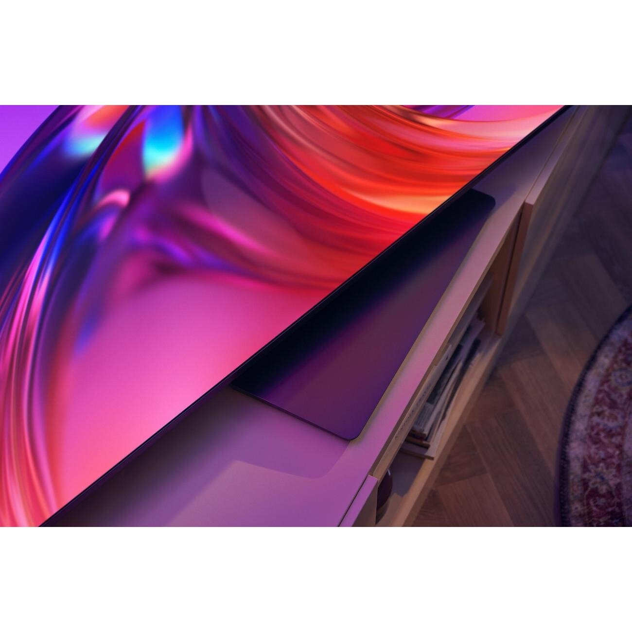 | Плюсы: | Шикарный экран, трёх сторонняя подсветка Ambilight, операционка Google TV (Android 12), качественный звук, удобный Bluetooth-пульт. |