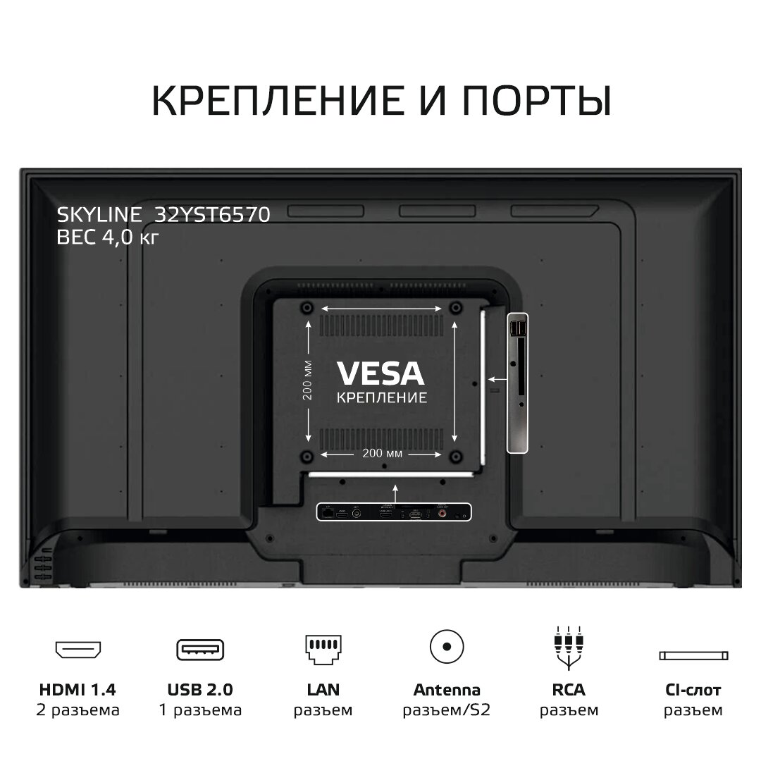 Телевизор SKYLINE 32YST6570 / SMART TV/ HD Ready / диагональ экрана 32"/ черный