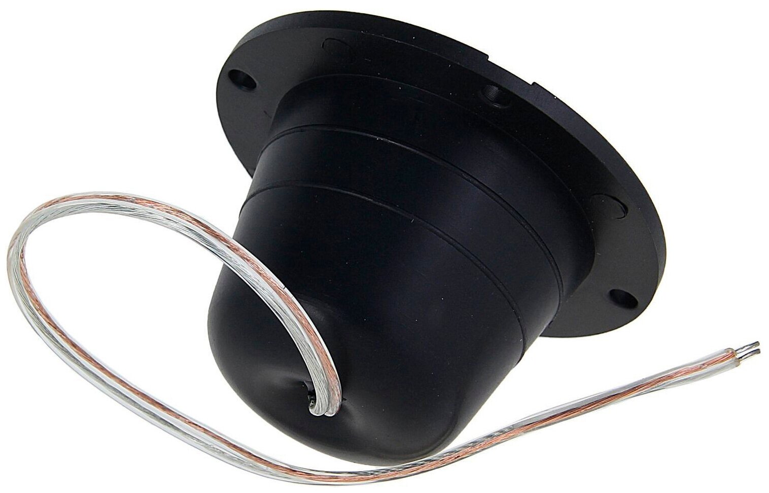 2. Неразборный корпус, провода сразу припаяны и выведены за приделы корпуса динамика. Если с ними что-то случится в корпусе или у корпуса, заменить будет не так просто. |