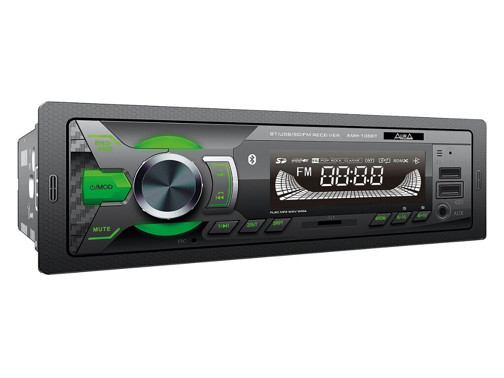 Автомагнитола Aura Usb/Microsd/Fm/Bluetooth 4х51w Зеленая Подсветка Amh-105bt AURA арт. AMH-105BT