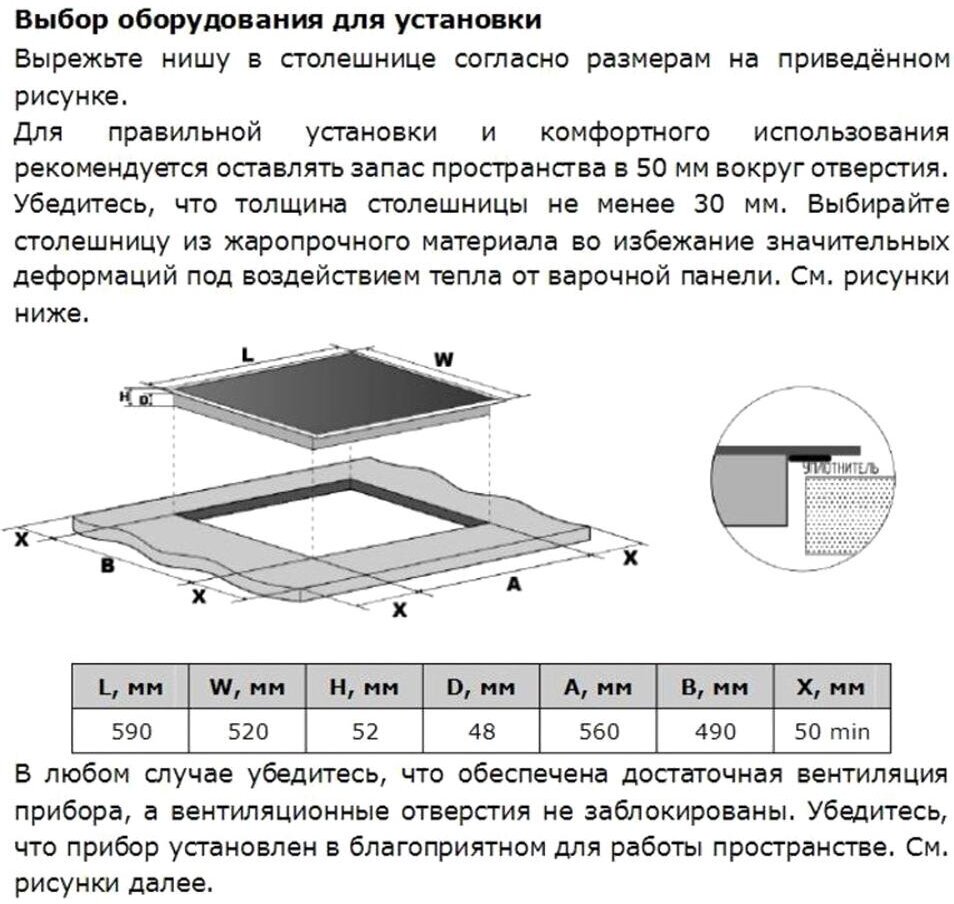 | Безопасность | защитное отключение конфорок / кнопка блокировки панели / индикатор остаточного тепла |