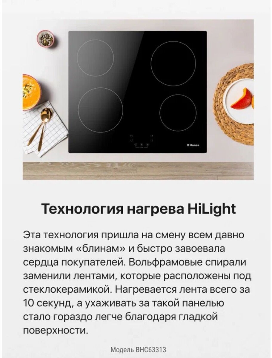 Электрическая варочная панель Hansa BHC63313, Hi-Light, независимая, черный