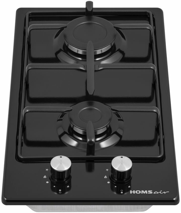 Газовая варочная поверхность HOMSair HGE323GCBK [эмал. сталь, конф.-2 шт, эл-подж., газконт., реш.-эмал. сталь, черный, серебристый]