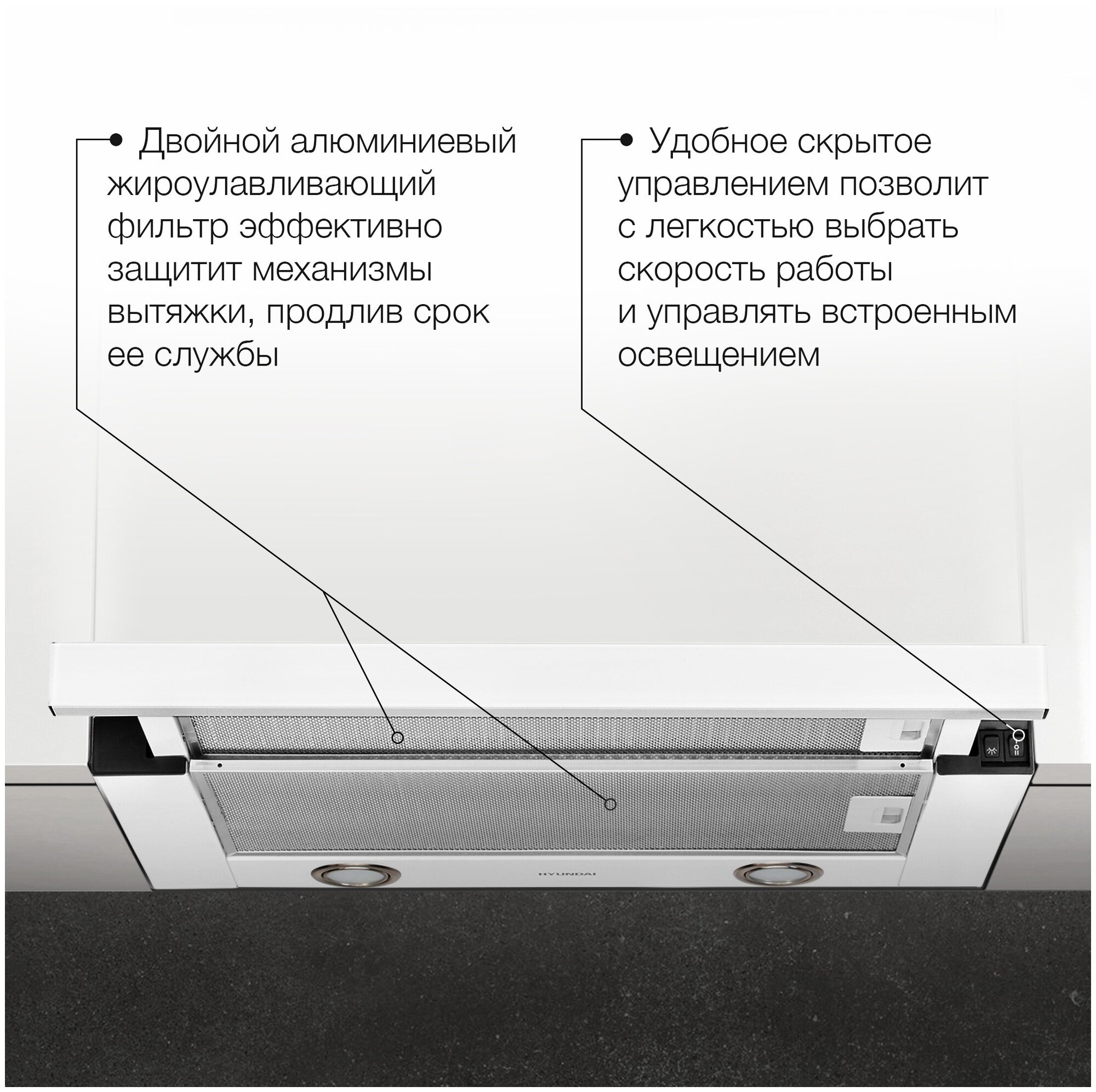 Вытяжка встраиваемая Hyundai HBH 6232 W белый управление: кнопочное (1 мотор)