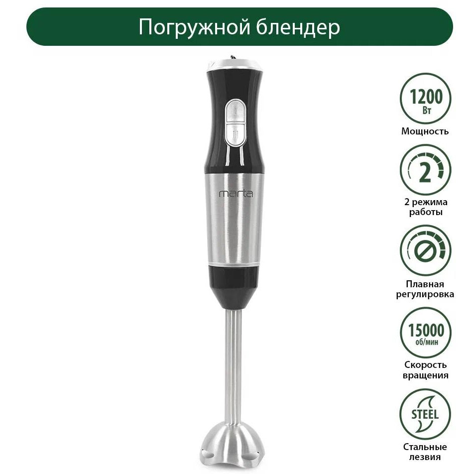 Погружной блендер MARTA MT-1574, черный жемчуг