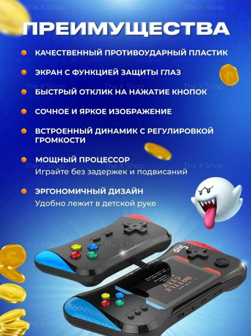 Ниже Вы можете прочитать отзывы на Портативная игровая приставка X7M с джойстиком 500 игр, ознакомится с подробными характеристиками, посмотреть интересные обзоры и фотографии на Портативная игровая приставка X7M с джойстиком 500 игр.