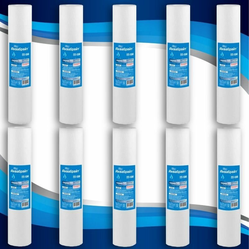Картридж для фильтра (10шт) полипропиленовый Аквабрайт "ПП-10М", для механической очистки воды
