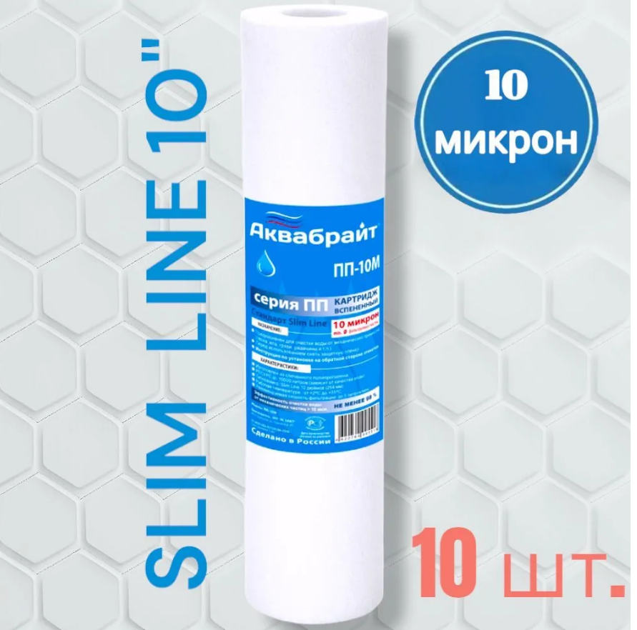 ПП-10М Аквабрайт - 2 шт, полипропиленовый картридж механической очистки воды, Slim Line 10 (10sl)