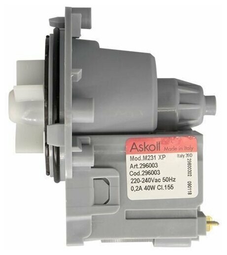 Сливной насос (помпа) универсальный 40W, Askoll для Ariston, AEG, Indesit, Electrolux, Zanussi, Candy, LG, Bosch, Whirlpool, Samsung, клеммы сзади раздельно, на винтах, 220V (Mod.M231 XP, PMP000UN), Р000