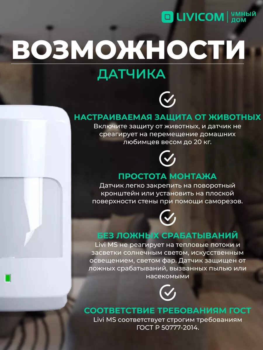 Датчик движения Livi MS для умного дома Livicom интересное: