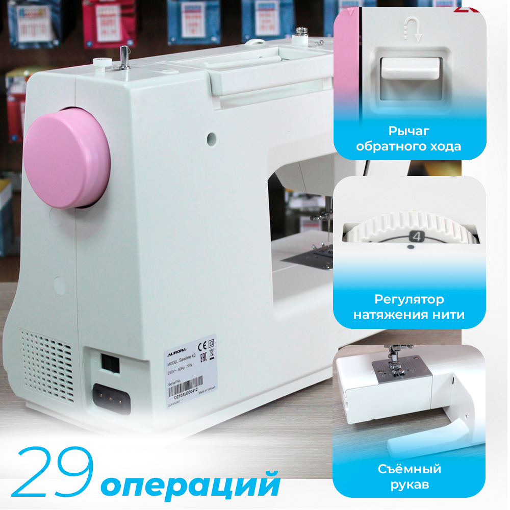Ниже Вы можете прочитать отзывы на Швейная машина Aurora Sewline 40, 70 Вт, 29 операций, автомат, бело-розовая Aurora 9705824 ., ознакомится с подробными характеристиками, посмотреть интересные обзоры и фотографии на Швейная машина Aurora Sewline 40, 70 Вт, 29 операций, автомат, бело-розовая Aurora 9705824 ..