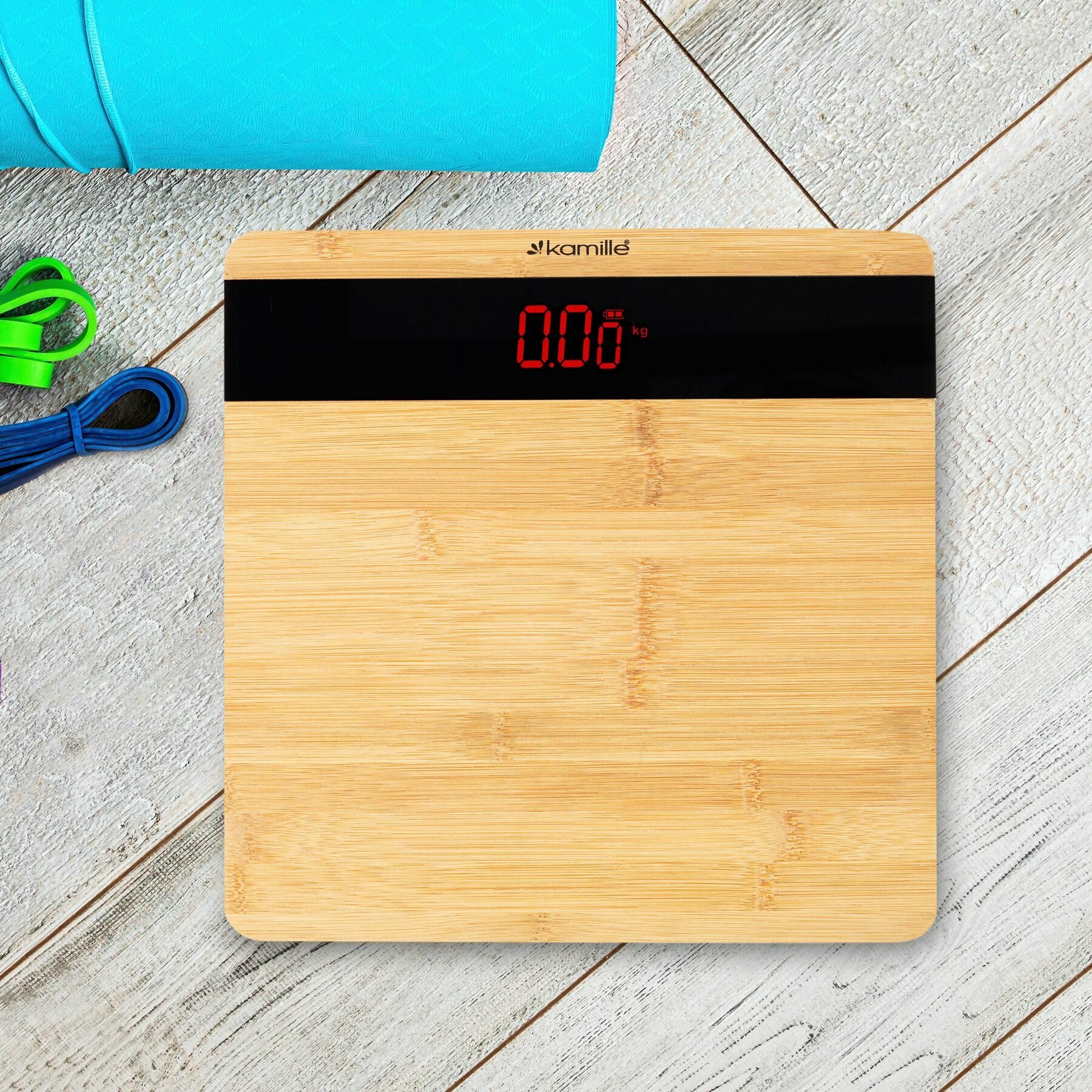Купить Весы напольные электронные Kamille KM-7113 платформа из бамбука