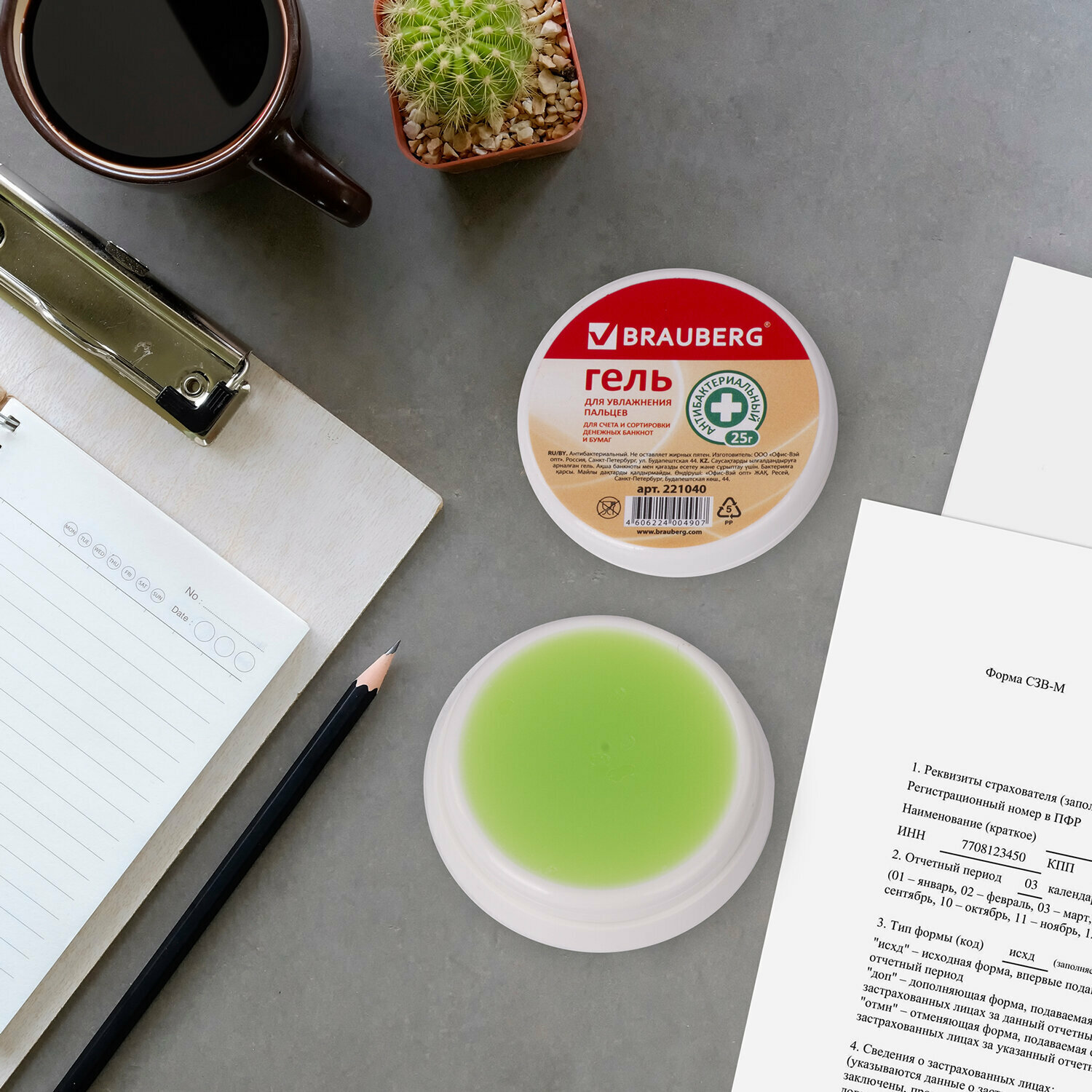 Гель для увлажнения пальцев антибактериальный BRAUBERG, 25 г, Россия, 221040, 221040