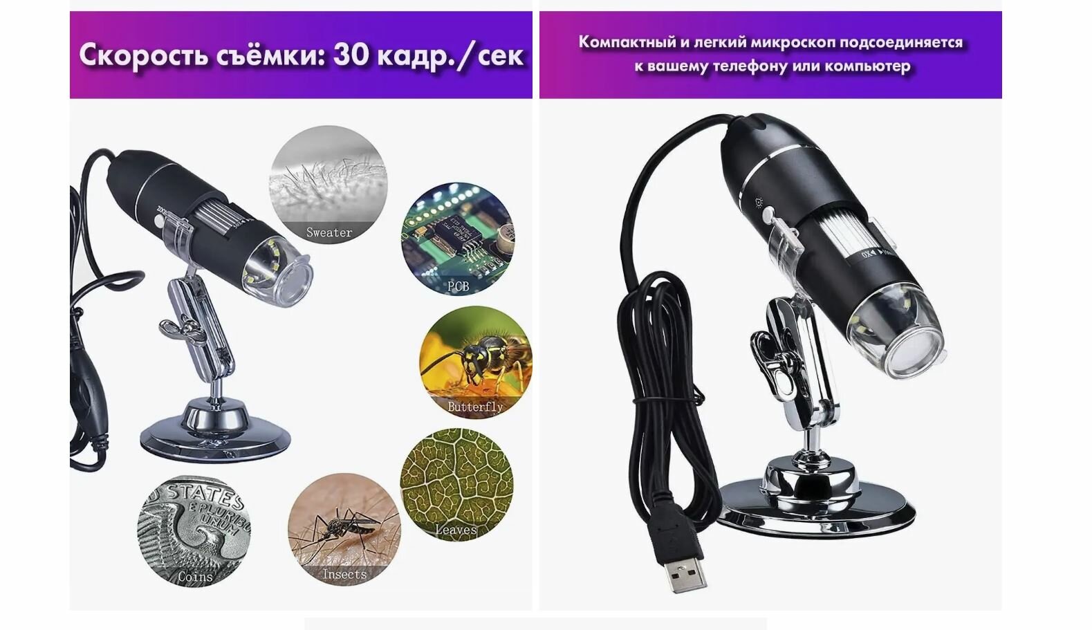 Цифровой микроскоп Wi-Fi с подсветкой электронный интересное: