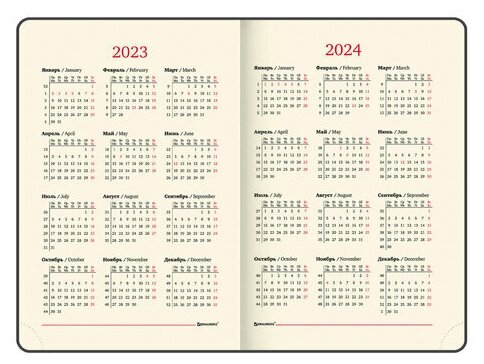 | Плюсы: | Хорошая обложка; полезная информация и мини календари(с праздниками) на 2023 и 2024 в начале; поля для заметок в конце; закладка. |