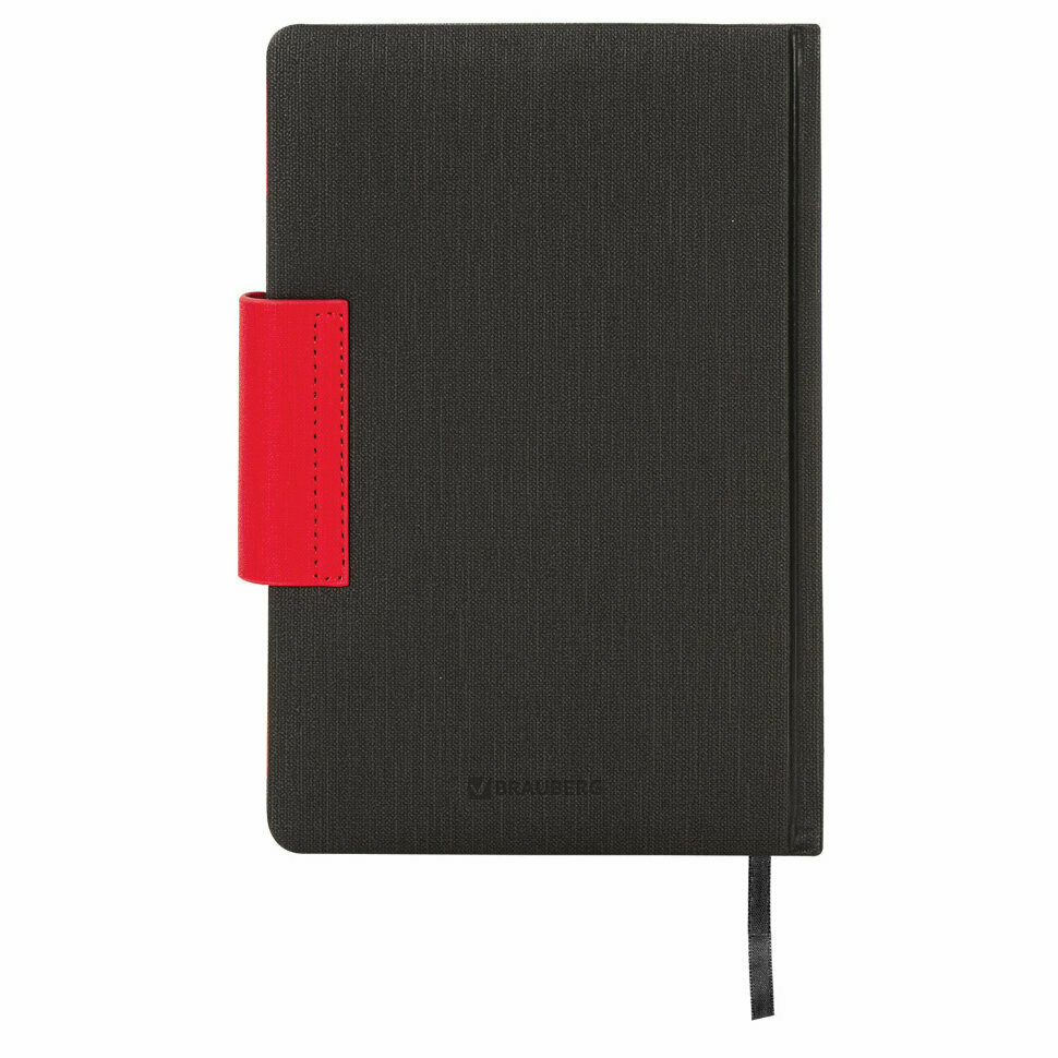Ежедневник недатированный А5 138×213 мм BRAUBERG «Waves» под кожу, застежка 160 л., черный/красный, 111876 /Квант продажи 1 ед./