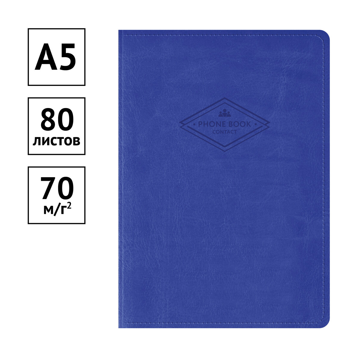 Купить Телефонная книга OfficeSpace А5, 80 листов, кожзам, "Winner" синий, с вырубкой PbA5_41370
