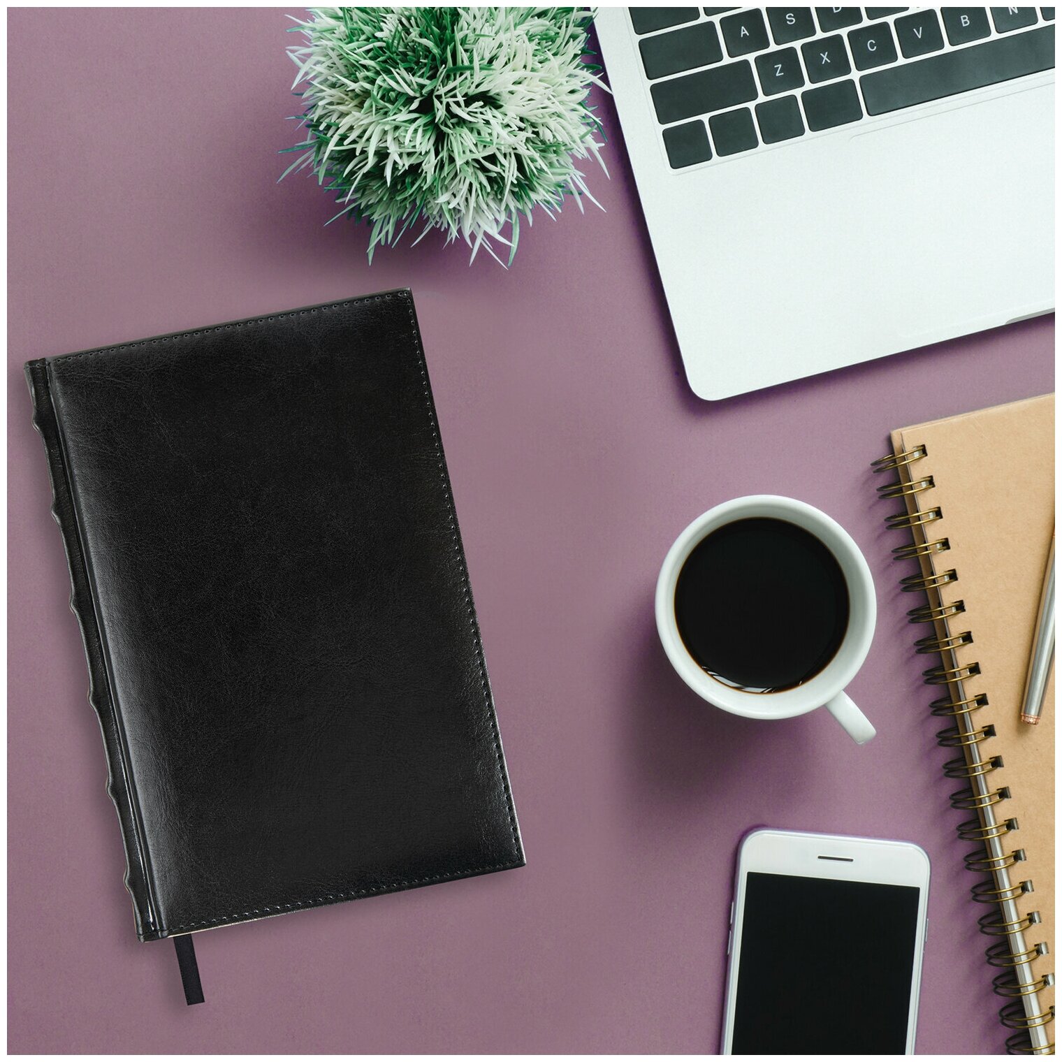 Ежедневник недатированный А5 138х213 мм BRAUBERG "FLAME", под кожу, 160 л., черный, золотой срез, 113426, 113426