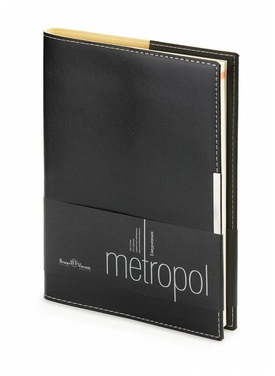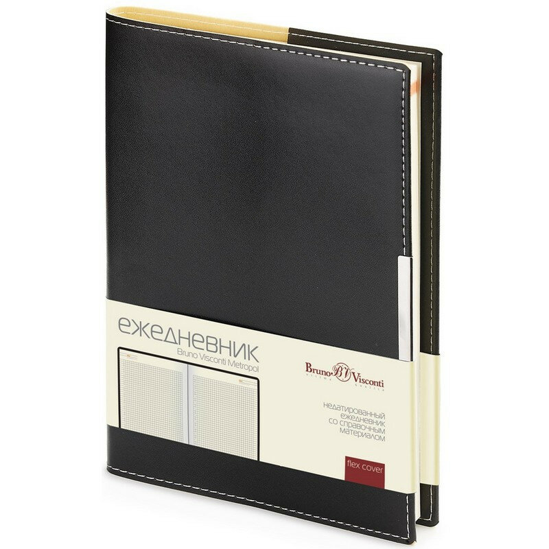 Ежедневник недатированный А5 Bruno Visconti Metropol (136 листов) обложка черная, переплетный материал