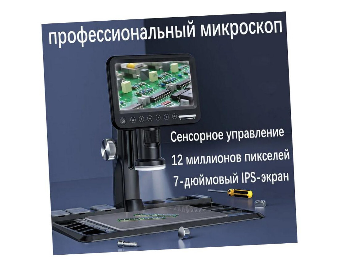 Цифровой микроскоп для пайки Erudit H318 (RUS) (Q22023MIK) (1600x - 1920х1080 / 14Mp) с монитором и записью на SD, удобный отсек под детали. интересное: