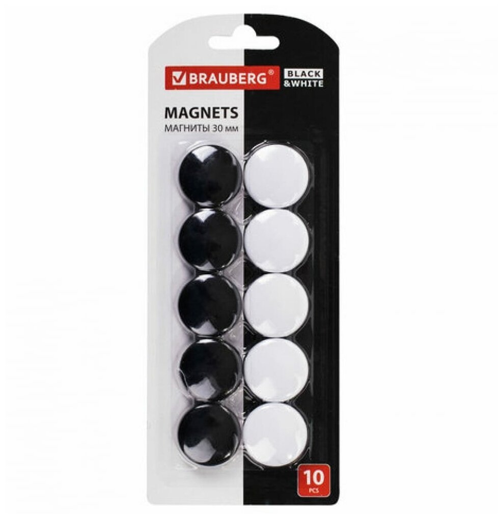 Магниты BRAUBERG /BLACK&WHITE/ усиленные 30 мм, набор 10 шт., черные/белые, 237468