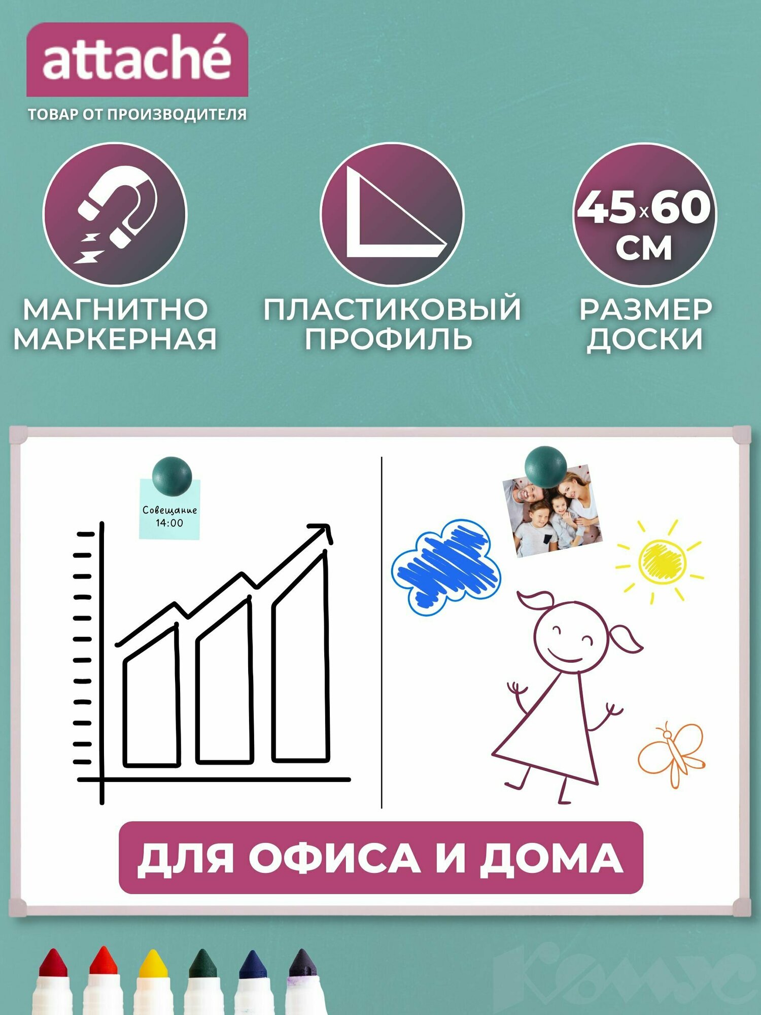 СохранитьДоска магнитно-маркерная Attache Economy Classic 60(BW-PL456)ПВХ профиль интересное: