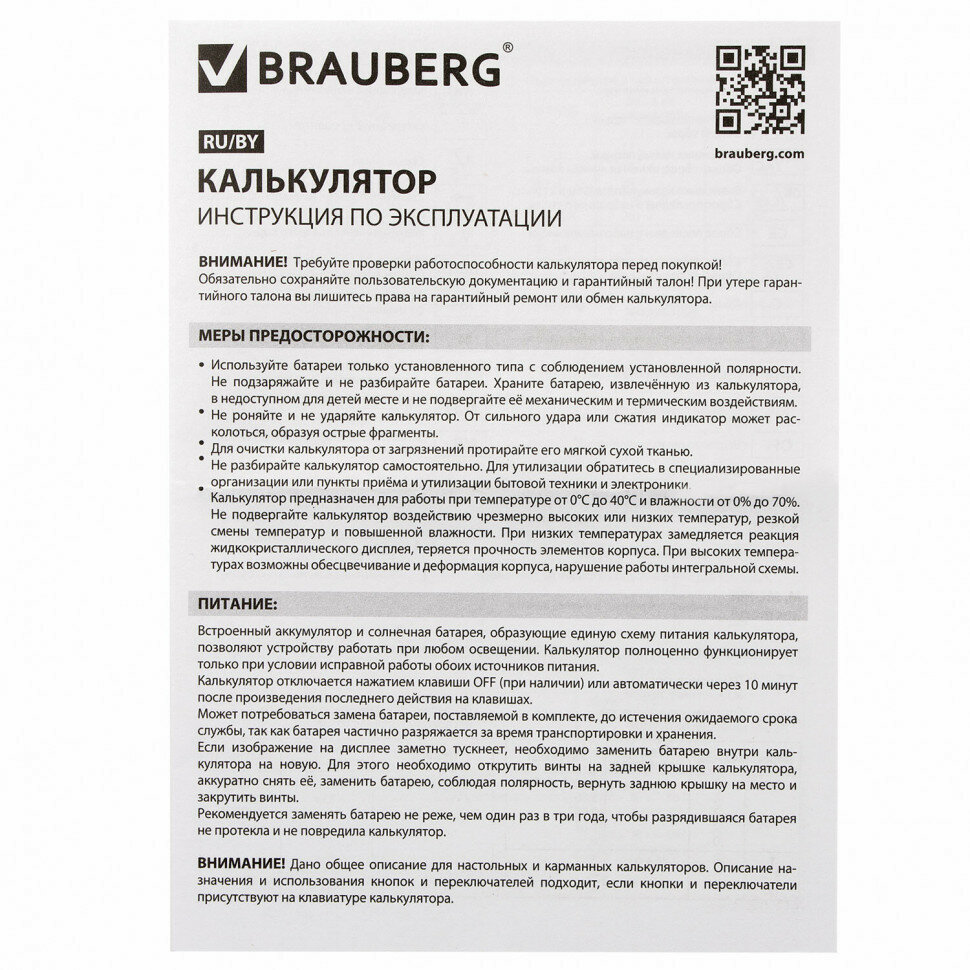 Калькулятор настольный Brauberg Extra Pastel-12-LB, 12 разрядов, двойное питание, голубой (250486)