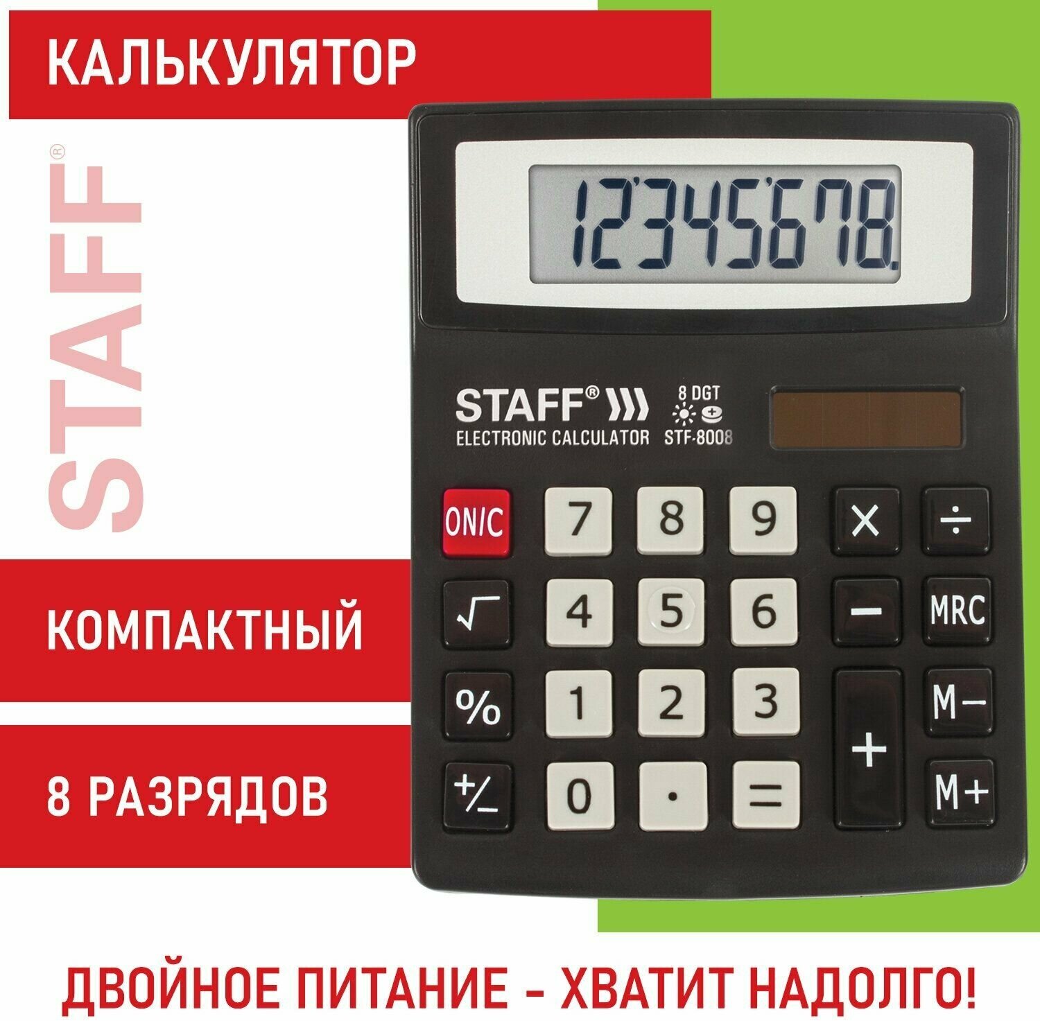 Калькулятор настольный STAFF STF-8008, компактный (113х87 мм), 8 разрядов, двойное питание, 250147, 250147