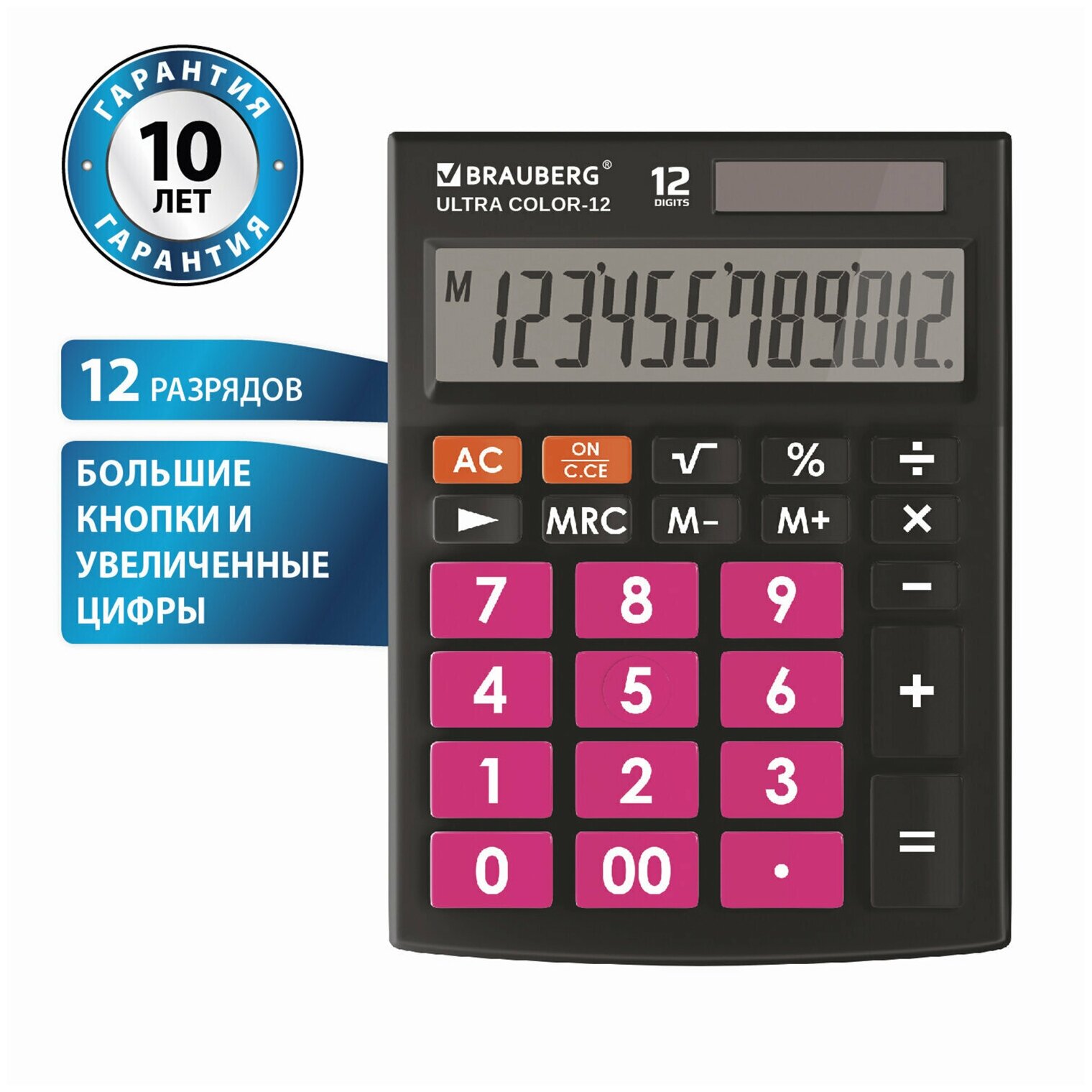 Купить Калькулятор настольный Brauberg Ultra Color-12-bkwr Черно-малиновый, 250500 .