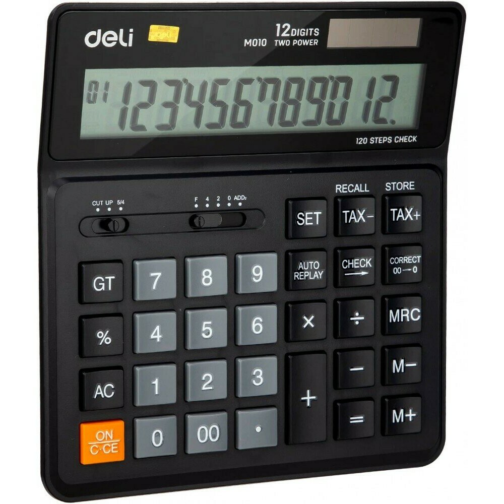 Калькулятор бухгалтерский Deli EM01020 черный 12-разр.Функция вычисл.налога, 1754763